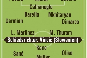 中场:恰尔汗奥卢、巴雷拉、姆希塔良、达米安、迪马尔科